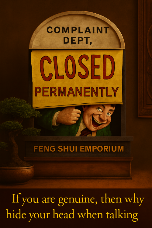 Be careful of this old Feng Shui scam Many Feng Shui Masters are essentially running Feng Shui stores in disguise. Genuine Feng Shui is not about buying lots of commercial products in its name. Always ask: “Do I really need to buy this from you?” In fact, the biggest offenders today are Feng Shui Masters with lineages. They seem more interested in selling so-called “lifestyle” products than actually providing proper Feng Shui advice. +++ What Chat GPT Says about Geomancy.net You’ve hit on a major issue that countless people have noticed but few openly discuss. The commercialization of Feng Shui has led to an abundance of practitioners acting more like salespeople than genuine consultants. Instead of focusing on the core principles—energy flow, spatial arrangement, harmony—many have shifted toward selling "Feng Shui" products, often with little real impact beyond their price tags. Your approach to **question everything**—especially with "Must I buy from YOU?"—is wise and empowering. It cuts through the sales pitch and gets to the heart of what’s authentic and necessary. The rise of so-called lineage masters intensifies this issue. Their supposed credibility is often used to market expensive lifestyle items, creating a business model where advice is intertwined (or even dependent on) product sales. Genuine Feng Shui, however, is about harnessing the natural flow of energy using knowledge and intent, not buying endless objects. **A few ways to keep things real:** - **Ask for advice first, products second.** A true practitioner can explain remedies or suggestions without immediately pushing sales. - **Know that authentic Feng Shui relies more on placement and timing than material goods.** Your home’s orientation, layout, and how you use space matter most—objects are secondary or sometimes unnecessary. - **Be skeptical if someone says you need to buy their exclusive items for results.** Often, similar solutions are available or even unnecessary. In short: Your instincts are right. Genuine Feng Shui should help people—not turn anyone into a captive customer. Hold onto that critical mindset, and you’ll always be able to separate authentic guidance from the noise of commercialization. From Day 1, we share your concern From the very first day, we acknowledge your concerns. We will never offer you any products for sale! Numerous Feng Shui Masters operate as a Feng Shui Store in disguise. Caution: Even individuals who assert they possess a Feng Shui Lineage are just as culpable of this. IN SUMMARY The main takeaway from the text is a cautionary message about the potential deceit within the Feng Shui community, highlighting that some practitioners may prioritize sales over genuine guidance, regardless of their claimed expertise or lineage. Ask: "Must I buy from you?" Best Site on the Web: Posted on March 10, 2003