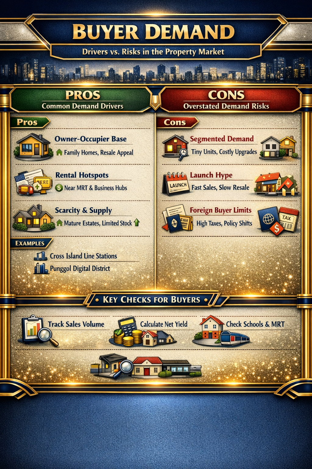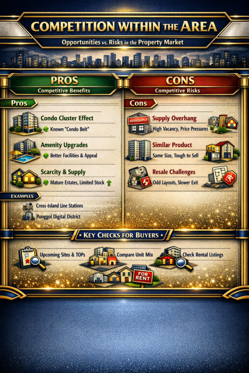 This topic has nothing to do with Feng Shui. I am also not a Real Estate agent. I am simply, just like you, a property buyer who is interested in property trends in SG. Introduction A practical pro and cons review of how Singapore property is often assessed and sometimes marketed by real estate agents, organised around four kEY points. This article will cover what tends to be true, what can be overstated, and what to check to validate the story. 1) Entry Prices Pros (what agents highlight) - “Affordable quantum” even if PSF is high: Smaller units in OCR/RCR can look entry-friendly (e.g., 1–2 bedders). Agents often position this as easier to own/exit. - New-launch pricing clarity: Fixed developer price list, progressive payment scheme, and “fresh lease” are pitched as a premium worth paying. - Resale “value gap”: Resale condos/HDBs in mature estates may look cheaper than nearby new launches on a PSF basis, creating a “relative value” narrative. Cons (real-world friction) - High absolute price levels: Singapore’s base price has risen materially over the past cycle; “entry” is often still a large downpayment + mortgage burden. - Quantum traps: - Small units can have higher PSF and more volatile resale demand (investor-led, tenant-led). - Maintenance fees can be disproportionately painful for small units. - Lease/tenure penalty: - Older leasehold properties can face financing constraints and valuation sensitivity as lease decays (especially for older HDBs and older leasehold condos). - Policy/financing constraints: - ABSD, TDSR/MSR, and LTV limits can make “cheap entry” less meaningful if you’re constrained by eligibility or total debt servicing. What to check (quick validation) - Compare quantum, PSF, and maintenance fees side-by-side for the same unit type. - Review recent caveats (URA Realis) for actual transacted prices, not just asking prices. - For older assets: check remaining lease, recent bank valuations, and resale time-on-market. --- 2) Buyer Demand Pros (common demand drivers) - Owner-occupier base demand: Singapore has structurally strong owner-occupier preference (especially for well-located resale and family-sized layouts). - Rental market supports investors (cyclical, but can be strong): Proximity to MRT/business nodes/schools often sustains rental demand. - Scarcity narratives: “Mature estate, limited supply” can be real in some pockets, supporting resale liquidity. Cons (where demand can be overstated) - Demand is segmented: - 1-bedders are often investor/tenant-driven; demand can drop fast if yields compress or policies tighten. - Large units rely on affluent upgrader demand which is sensitive to interest rates and stock-market sentiment. - New-launch demand can be “event-driven”: - Strong launch weekend take-up doesn’t always translate to strong resale premiums later, especially if many similar projects TOP together. - Foreign demand is policy-sensitive: - High ABSD for foreigners means foreign buyer demand is concentrated in specific segments and can switch off quickly. What to check - Track transaction volume trends (not just price) in the last 6–12 months. - For investment: test net yield after maintenance, property tax, agent fees, vacancy assumptions. - For family demand: check school zone reality (1km rules), actual walk time to MRT, and nearby amenity maturity. --- 3) Competition Within the Area Pros (how competition can help) - Cluster effect: Multiple condos in an area can create a known “condo belt” that attracts tenants and buyers (more comparables, more visibility). - Amenity build-out: Competition among developers/MCSTs can improve landscaping, facilities, and upkeep standards—helping perceived value. Cons (most important risk) - Supply overhang / “cannibalisation”: - If multiple projects launch or TOP around the same time, you can see resale price stagnation and rental competition (landlords undercut each other). - Similar product problem: - If nearby projects offer similar layouts/size/pricing, your unit’s differentiation is weak—buyers pick based on price, squeezing upside. - Exit liquidity varies by stack and layout: - Even in a “hot area,” odd layouts, poor facing, road noise, or weak stack positioning can face much slower resale. What to check - Look up the pipeline: GLS sites, upcoming launches, and estimated TOP dates within ~1–3 km. - Compare unit mix (how many 1/2/3-bedders) across projects—this predicts resale and rental competition. - Observe rental listings (number of competing listings + asking rents) to gauge landlord competition. --- 4) Phases of Transformation Agents frequently sell a “transformation story.” This can be valid—but timing matters. Typical phases (and what they mean for buyers) Phase 1: Announcement / Masterplan headline (0–2 years) - Pros: Sentiment uplift; “early-bird” narrative; some price repricing happens quickly if the plan is credible. - Cons: Most of the gain can be front-loaded; execution risk is high; details are often vague. Phase 2: Infrastructure commitment (2–6 years) - Examples: confirmed MRT line/station, major road links, institutional anchors. - Pros: Real improvement in accessibility; demand broadens; rental appeal can improve. - Cons: Construction noise/dust; detours; liveability dips short-term; “buy the rumour, sell the news” risk. Phase 3: Commercial/amenity activation (5–10+ years) - Examples: malls, offices, parks, schools, healthcare nodes actually open and operate. - Pros: Strongest fundamental support for both owner-occupiers and tenants; resale liquidity tends to improve. - Cons: By the time benefits are obvious, entry price is usually much higher; upside may be more limited. Phase 4: Maturity / Re-rating stabilises - Pros: More stable demand base; clearer price discovery. - Cons: Growth can slow; you rely more on broader market cycles than “transformation alpha.” Singapore examples of transformation narratives (i