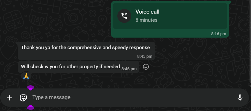 Thank you ya for the comprehensive and speedy response Will check w you for other property if needed