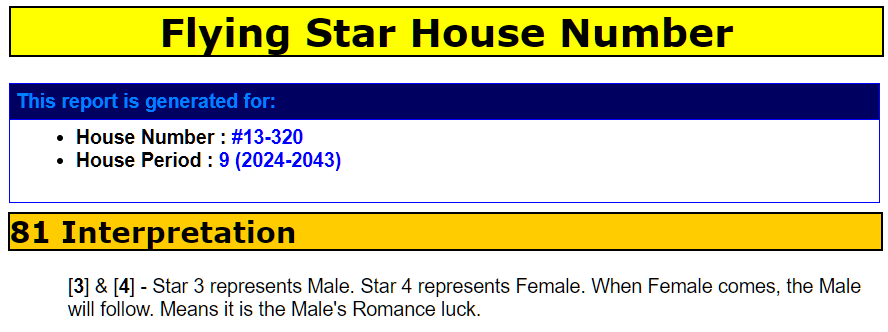 We offer a service that ranks the best stacks. I want a ranking of best units in a newly launched development - FAQ: Home Feng Shui / Cannot Cannot Buy / Baby Name / Auspicious Dates - FengShui.Geomancy.Net +++ How can I check if a unit number is lucky? For e.g. Block 100B, Stack 320 For e.g. #08-320 For e.g. #11-320 +++ Please use the link here to check any units you want. OPTION 1 Please go to this link to check a unit number: https://www.geomancy.net/content/personalised-reports/free-feng-shui-reports/house-number-report/about-house-number-report [Need to create a free account to access it] or OPTION 2 Go to URL: https://login.geomancy.net On the blue navigation on the left, click under Free Reports | House Number. What is the difference between a Stack and a Unit? 1. A Development: The whole project/site as one entity. It can include multiple buildings/blocks (e.g., several blocks of flats) and shared areas. 2. A Block of flat: One building within the development that contains multiple apartments/units (often with shared corridors, lifts, etc.). For e.g. Block 100B consists of eight stacks: 316, 318, 320, 322, 324, 326, 328 &330 We rank the best stacks for you. 3. A Stack: A vertical line/column of units within a block—units in the same position on different floors (one of many stacks in a block). For e.g. Block 100B, Stack 320 We help you to rank the best Stacks I want a ranking of best units in a newly launched development - FAQ: Home Feng Shui / Cannot Cannot Buy / Baby Name / Auspicious Dates - FengShui.Geomancy.Net 4. A Unit: An individual apartment/home identified by floor and unit number, e.g. Level 7 #07-320 or Level 8 #08-328. #07-320 #08-320 #09-320 #10-320 #11-320 #12-320 #13-320 +++ This link provides free reviews of any units as much as you want Please go to this link to check a unit number: https://www.geomancy.net/content/personalised-reports/free-feng-shui-reports/house-number-report/about-house-number-report [Need to create a free account to access it]