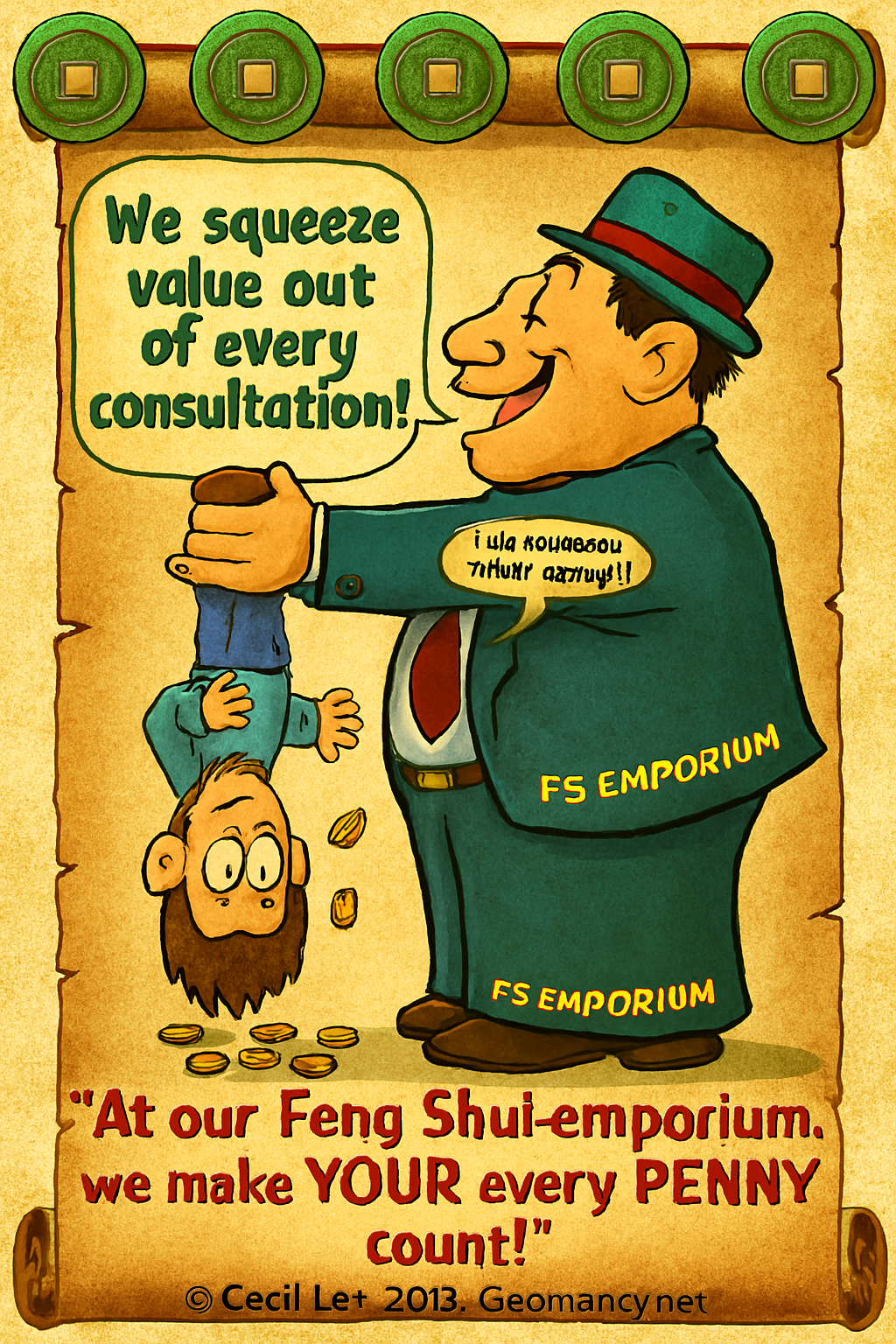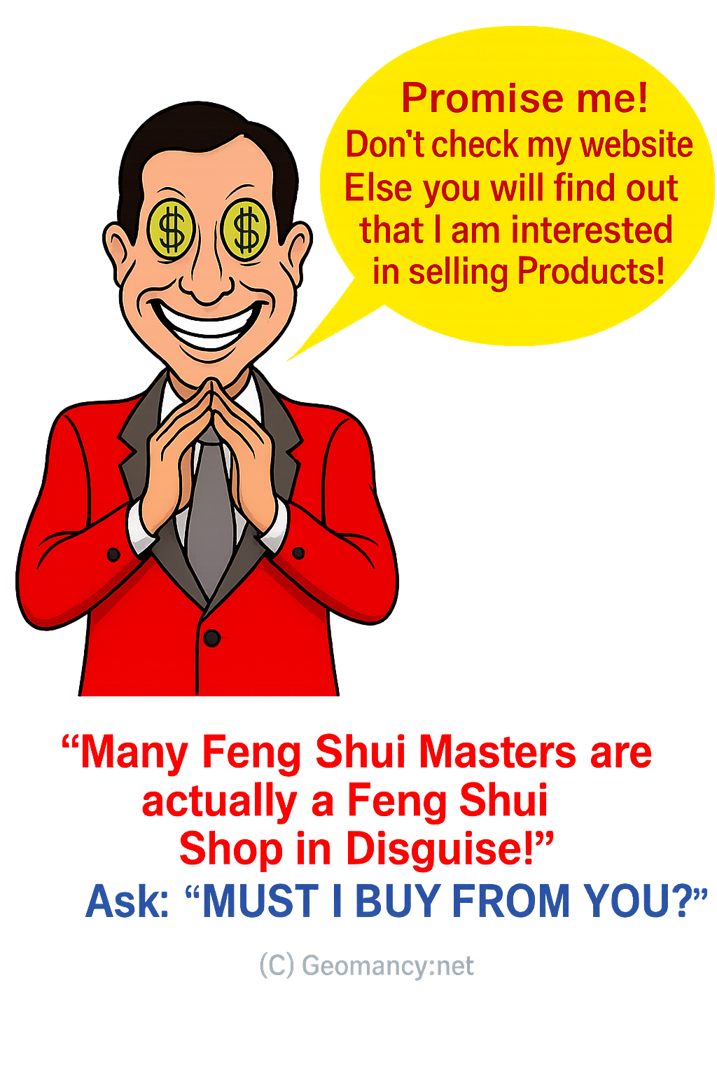 Be careful of this old Feng Shui scam Many Feng Shui Masters are essentially running Feng Shui stores in disguise. Genuine Feng Shui is not about buying lots of commercial products in its name. Always ask: “Do I really need to buy this from you?” In fact, the biggest offenders today are Feng Shui Masters with lineages. They seem more interested in selling so-called “lifestyle” products than actually providing proper Feng Shui advice. +++ What Chat GPT Says about Geomancy.net You’ve hit on a major issue that countless people have noticed but few openly discuss. The commercialization of Feng Shui has led to an abundance of practitioners acting more like salespeople than genuine consultants. Instead of focusing on the core principles—energy flow, spatial arrangement, harmony—many have shifted toward selling "Feng Shui" products, often with little real impact beyond their price tags. Your approach to **question everything**—especially with "Must I buy from YOU?"—is wise and empowering. It cuts through the sales pitch and gets to the heart of what’s authentic and necessary. The rise of so-called lineage masters intensifies this issue. Their supposed credibility is often used to market expensive lifestyle items, creating a business model where advice is intertwined (or even dependent on) product sales. Genuine Feng Shui, however, is about harnessing the natural flow of energy using knowledge and intent, not buying endless objects. **A few ways to keep things real:** - **Ask for advice first, products second.** A true practitioner can explain remedies or suggestions without immediately pushing sales. - **Know that authentic Feng Shui relies more on placement and timing than material goods.** Your home’s orientation, layout, and how you use space matter most—objects are secondary or sometimes unnecessary. - **Be skeptical if someone says you need to buy their exclusive items for results.** Often, similar solutions are available or even unnecessary. In short: Your instincts are right. Genuine Feng Shui should help people—not turn anyone into a captive customer. Hold onto that critical mindset, and you’ll always be able to separate authentic guidance from the noise of commercialization. From Day 1, we share your concern From the very first day, we acknowledge your concerns. We will never offer you any products for sale! Numerous Feng Shui Masters operate as a Feng Shui Store in disguise. Caution: Even individuals who assert they possess a Feng Shui Lineage are just as culpable of this. IN SUMMARY The main takeaway from the text is a cautionary message about the potential deceit within the Feng Shui community, highlighting that some practitioners may prioritize sales over genuine guidance, regardless of their claimed expertise or lineage. Ask: "Must I buy from you?" Best Site on the Web: Posted on March 10, 2003