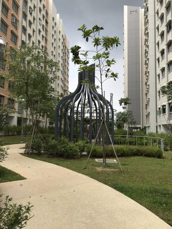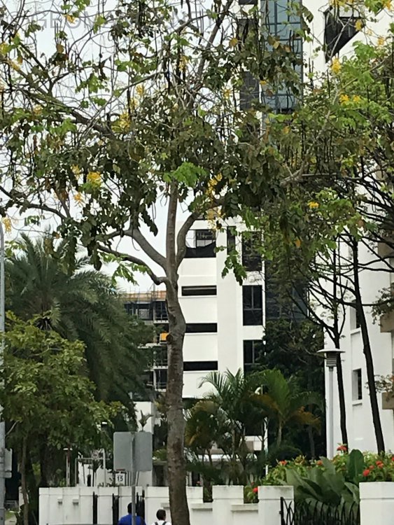 These trees are the correct trees for ground floor units. As these trees are literally Low maintenance trees. And their leaves seldom falls off. Occasionally these trees fruit. Hope no naughty children take a bite out of it.. These are identical Low maintenance trees found in another condo. The trees are 2 1/2 years old:- They are cheaper than external blinds or zip tracks.