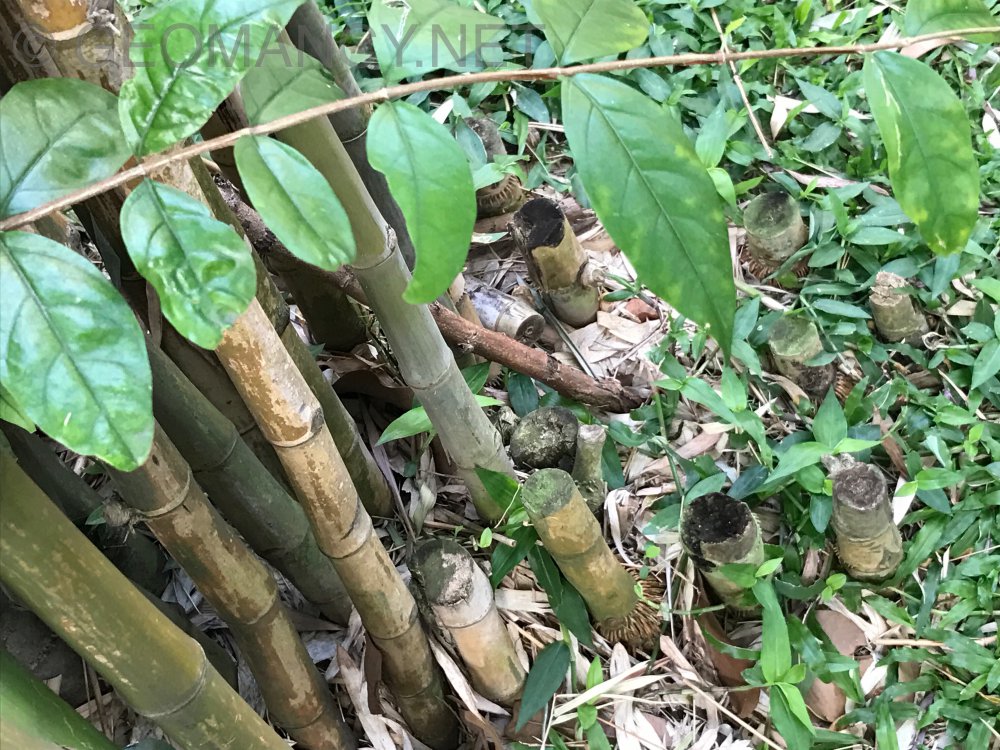 Clusters of bamboo and banboo stumps. Some of the stumps have cavities. And potential for mosquito breeding.
