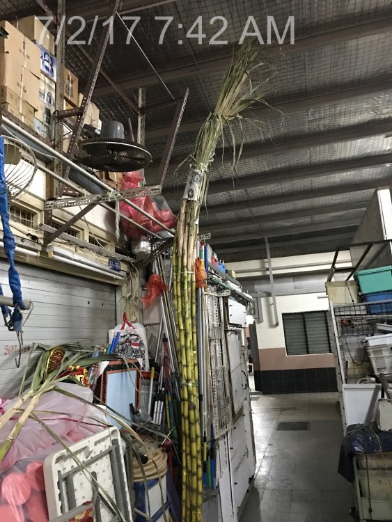 In the past, many Chinese from Fujian province (Hokkiens) were persecuted by the North. And assisting the North in their persecution were the Cantonese. Many Hokkiens took refuge in the sugarcane fields. And every year during the birthday of the Jade emperor; lavish offerings were laid out with Two stocks of sugarcane plants similar to the photos in each side of the altar. At midnight of the 9th lunar day; the altar is well stock with many foods to make the Jade emperor happy. PS. Was at Marine Parade Central market. Unsold stocks of the sugarcanes