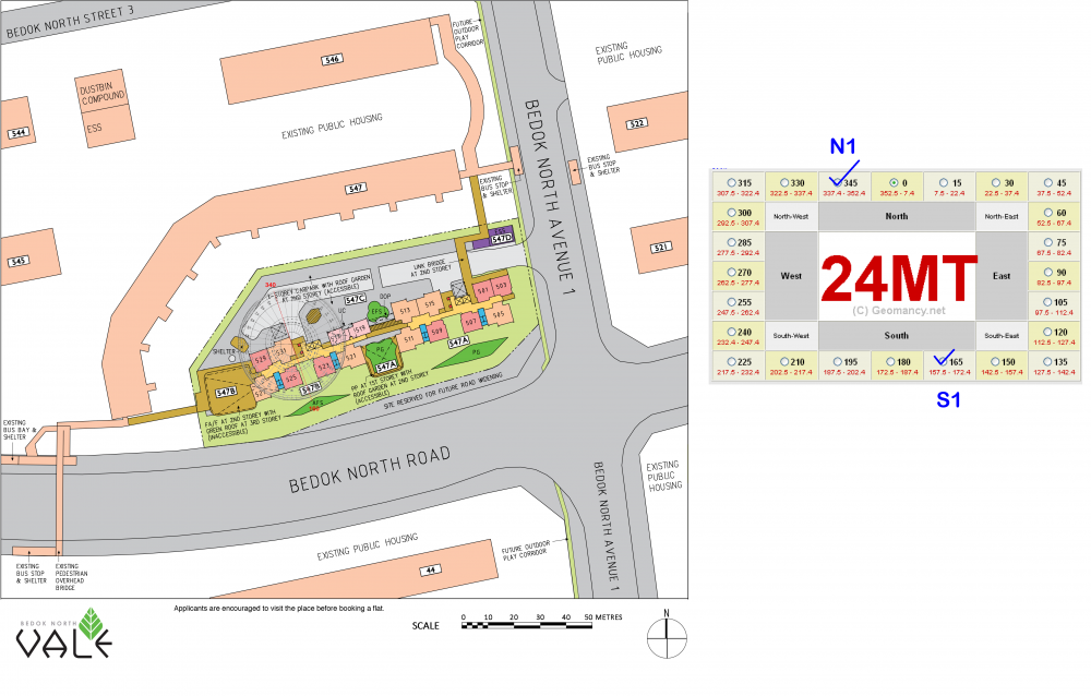 Bedok Beacon Sales Brochure: Site Plan and Floor Plans bedok-beacon.pdf Year Completed: 2021 Case Study 1: The Flying Star Feng Shui is dangerously close to a zone of disaster = neither here nor there. 1. For example, it is bad luck to have a unit that is say neither N1 or N2 and S1 or S2. Let's hope not! 2. HDB Bedok Beacon located at the former temporary bus interchange when Bedok Mall was under construction. 3. This development only has 4 bedrooms and 2 bedroom Flexi Types 1 and 2. 4. Under Flying Star Feng Shui, this development is either facing N1 352 degrees or S1 172 degrees. 4.1. A mere 0.5 degrees off and it would become N2 or S2 facing stacks/units. 4.2. For example, it is bad luck to have a unit that is say neither N1 or N2 and S1 or S2. Let's hope not! 5. Therefore, it is best that when the development T.O.P. on-site readings be taken to confirm whether it is still either N1 or S1. -