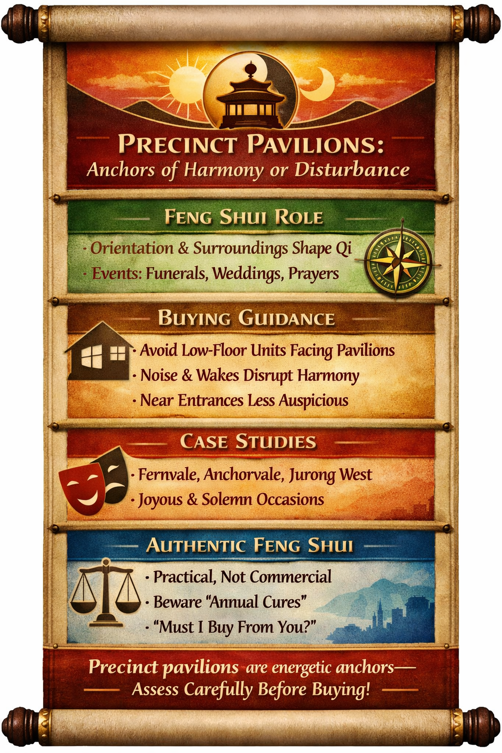When conducting an initial Feng Shui assessment to determine whether a property is suitable for purchase, one of the first aspects I consider is the presence and location of precinct pavilions within the HDB estate. 1. One of the key elements I take into account when assessing the viability of acquiring a property at a new BTO site or development is this factor. 2. Undoubtedly, everyone must confront mortality at some stage in their lives. 3. Nevertheless, considering the skyrocketing prices of newly constructed apartments, it is clear that owning a home entails a considerable financial obligation. 4. In the process of selling a property, our collective aim is to optimize our investment returns. 5. The positioning of the precinct pavilion, whether it is discreetly located in a corner or prominently visible from several units, holds minimal importance. 6. It is recommended to avoid purchasing a unit on the lower floors that has a direct view of the precinct pavilion. 7. Earlier today, I traversed through Fernvale and took note of a specific residential area. 8. Some of the apartments are not only located near a wake or funeral, but I also heard loud music emanating from the event. IMG_8439.MOV 9. Unforeseen events such as a funeral can coincide with joyous family gatherings like Chinese New Year or a wedding tea ceremony, which are beyond our control. 10. Even though it was in the adjacent block, the music was excessively loud. The soundtrack can be identified in any of these three films... IMG_8437.MOV IMG_8438.MOV The units located on the lower floor of Block 436A have the potential to directly observe the entrance and resting area of the funeral. IMG_8439.MOV My Assessment Approach When advising clients on whether to consider a particular unit or block, I always factor in: - The orientation and type of precinct pavilion; - The immediate surroundings, including pathways, landscaping, and facilities; - Past and expected usage of the pavilion. This assessment forms a crucial part of my “Can or Cannot Buy” analysis, ensuring the property supports both physical and energetic harmony for its future occupants. Final Thoughts Genuine Feng Shui isn’t about selling remedies or products it’s about informed, practical evaluation rooted in tradition and experience. By understanding how features like precinct pavilions impact the estate's qi, buyers can make more confident, long-term decisions.