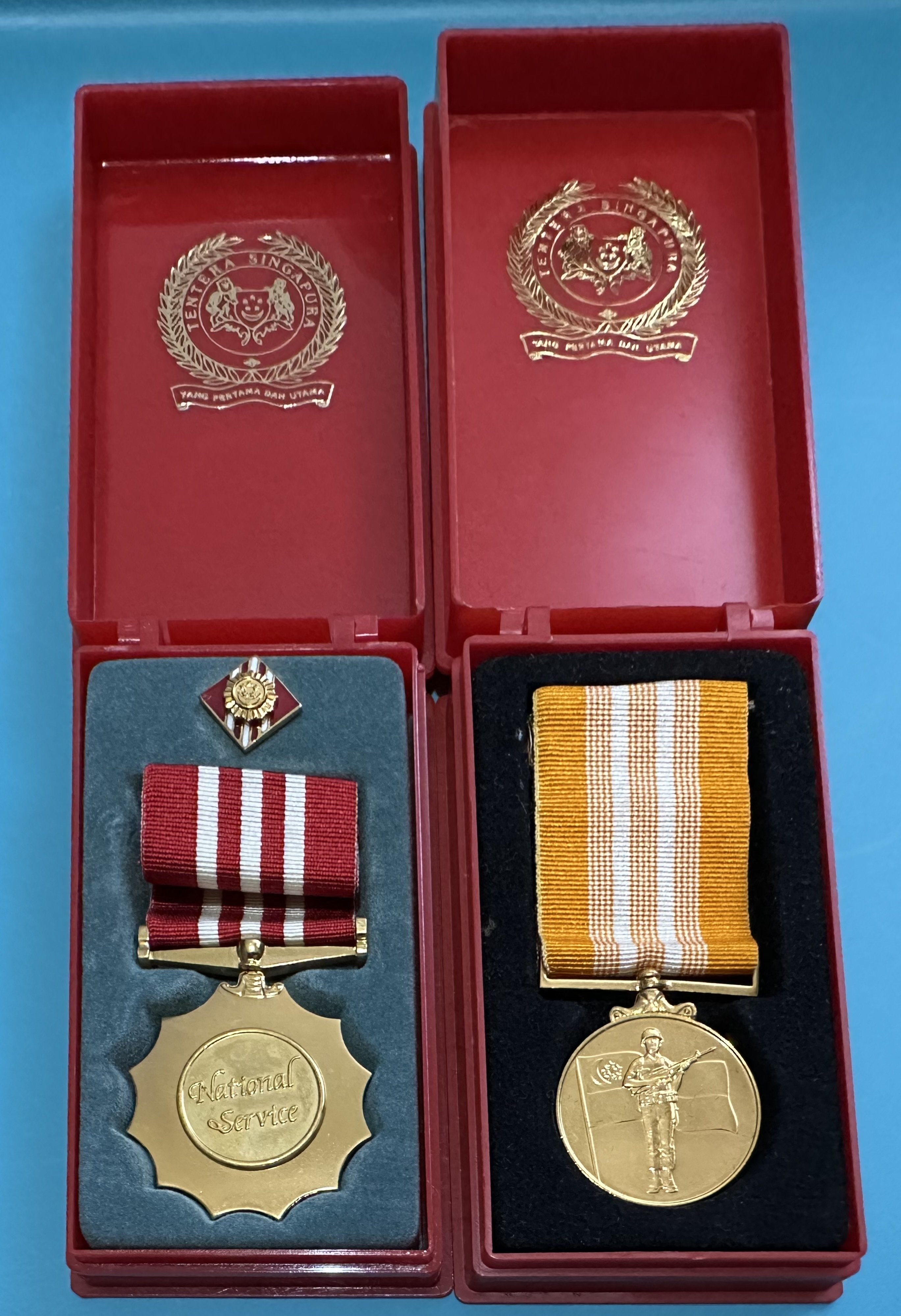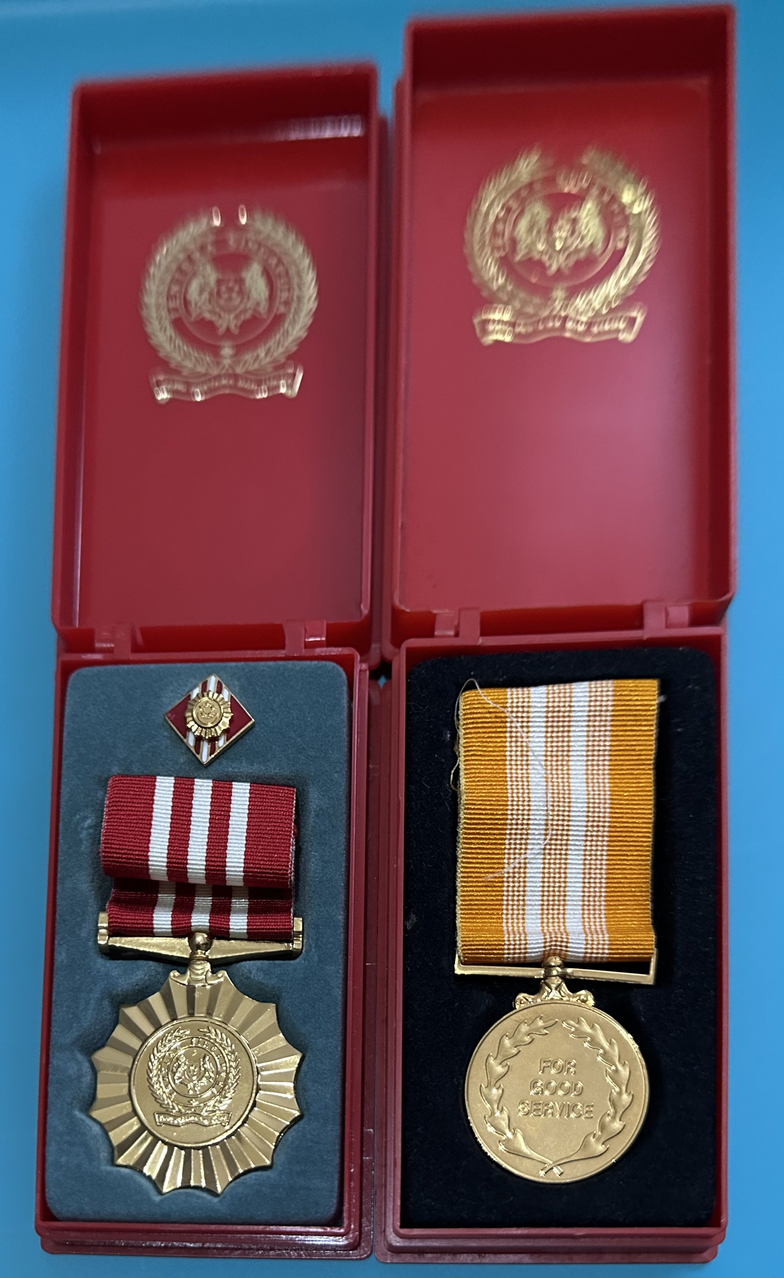 The Singapore Armed Forces (SAF) Good Service Medal Recognises good, efficient, and faithful service in the SAF and eligible defence-related services. Typically awarded to reservists who have completed five or more years of service. Identified by a yellow ribbon (shown on the right):- National Service (NS) Awards Medal (Above: maroon ribbon, left). Recognises NSmen (reservists) for long, consistent, and satisfactory ORNS service, including meeting call-ups/training obligations with good conduct and performance. It is a long-service award, not an operational or performance-based medal. I know many army colleagues who, in the past, even let their children play with the medal (after removing the pin). Others simply throw the medal into a storage bin or leave it in a storage box and forget about it. Recently, I saw a photo on Facebook of a client-officer wearing the Good Service Medal on his smart formal dress uniform, together with one or more other medals. Since he is a regular, I don’t think he was entitled to the NS Awards Medal if he signed on from the day he was enlisted in the army. +++ My school badges and other badges